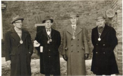 V.l.n.r. postbodes Stève Wennekes, Antoon Ruikes, Toon Messing en Antoon Booms met een vooralsnog onbekende medaille. |