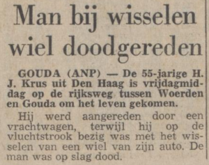 | + | Hij overleed op 9 november [[1973]] aan de gevolgen van een verkeersongeval op de A12 ter hoogte van Woerden. Op 14 november is hij begraven op [[Begraafplaats Stokkum|het kerkhof]] te Stokkum. | ||