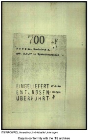 | 8 mrt 2010 18:29 | Ettema PDL Transportkarte Neuengamme.jpg (bestand) | 161 kB | Ettema's transportkaart naar Neuengamme uit Kamp Amersfoort, bewaard in ITS-Arolsen. Beschikbaar gesteld door Annemiek Littlejohn van Stichting Hart voor Kamp Amersfoort. | 1 | |