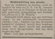 | 4 okt 2010 06:11 | Moord in Beek 19120723 Uitspraak.JPG (bestand) | 328 kB | Berichten uit 1)Het Centrum, 2)Het Nieuws van den Dag, 3)Nieuwe Rotterdamsche Courant, 4)Nieuwe Tilburgsche Courant, 5)Tilburgsche Courant, 6)Het Volk van 23 juli 1912 | 1 | |