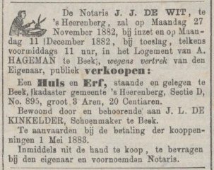 Uit de Arnhemsche Courant van 18 november 1882 op http://www.delpher.nl