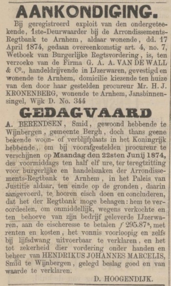 - Arnhemsche Courantvan 22 april 1874 op Delpher
