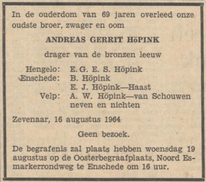 Uit Tubantia van 17 augustus 1964 op http://www.delpher.nl