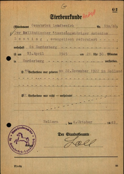 Sterbeurkunde AHThA Lenting 1949 https://wiewaswie.nl