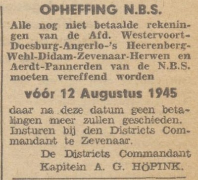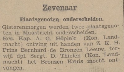 Andreas Gerrit Höpink was tijdens de meidagen van 1940 als reservekapitein commandant van 1-IV Bat. Pag., een compagnie pantserafweergeschut die deel uitmaakte van de reserve-eenheden van de IV Divisie. De compagnie werd ingezet bij de strijd op de Grebbeberg. Bij 1-IV Bat. Pag. diende Wim Berntsen uit Beek, die op 13 mei 1940 is gesneuveld.
