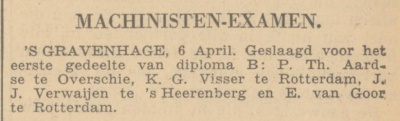 Terug in Nederland heeft Verwaijen zich verder bekwaamd in het vak van scheepsmachinist. In oktober 1937 slaagde hij voor het Diploma A van het machinistenexamen, waarna hij in april 1938 slaagde voor het eerste deel van het Diploma B.