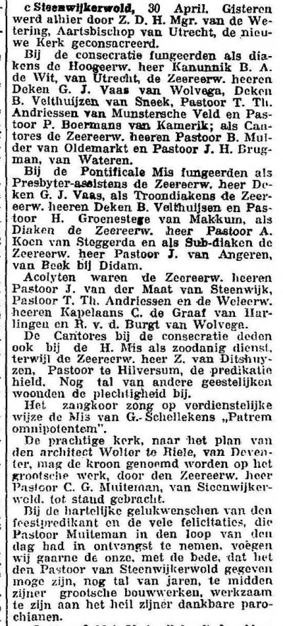 Verder heeft Muiteman in Steenwijkerwold een nieuwe kerk laten bouwen, die op 29 april 1913 werd ingewijd. Bij deze plechtigheid was de toenmalige pastoor van Beek, J. van Angeren, aanwezig als sub-diaken.