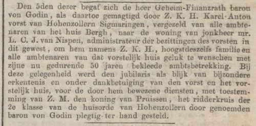 De in het eerste knipsel genoemde Geheim-Finanzrath von Godin volgde in datzelfde jaar Van Nispen op als administrateur.