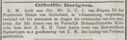 De inhoud van de hier afgebeelde krantenknipsels spreekt voor zich. Opvallend is dat er aan de toekenning van de Vorstelijk Hohenzollernse Huisorde maar liefst drie koninklijke hoogheden te pas moesten komen!