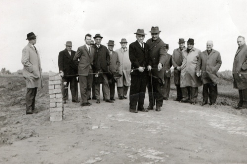 | + | [[Bestand: Ruilverkaveling openingsplechtigheid.jpg|thumb|500px|'''De PC bij de opening van een van de projecten. De man in donker pak met de schaar is voorzitter Hein Slebusch; tweede van rechts is Harrie Giesen.]] | ||