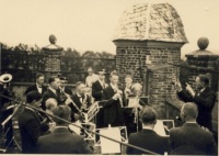 | − | + | [[Afbeelding:Concert_HarmonieBergh_1937.jpg|thumb|200px|right|'''Harmonie Bergh''' tijdens een concert in [[1937]] op de toren van [[Huis Bergh]]]] | |