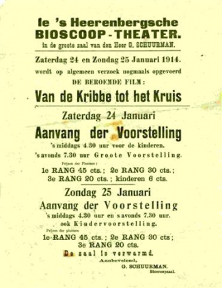 Wel is er nog een ander document waarop beschreven staat dat op 24 januari 1914 de film van de Kribbe tot het Kruis geprolongeerd werd, de Familie Bioscoop heette toen ,,Het 1e 's-Heerenbergsche Bioscoop-Theater".