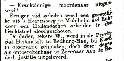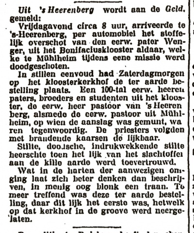 Pater Wenger werd in Muhlheim vermoord door een Nederlandse arbeider, die later aan Nederland werd uitgeleverd.