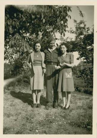 Joseph met zijn zussen Betty (rechts) en Diny. De foto is gemaakt voor of na zijn diensttijd in Nederlands-Indië, waarschijnlijk door broer Harry.