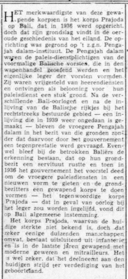 Een korte beschrijving van het Korps Prajoda in De Telegraaf van 4 maart 1942 (vier dagen voor het KNIL zich overgaf aan de Japanners). Deze tekst is onderdeel van een langer artikel over bijzondere inheemse hulpkorpsen.