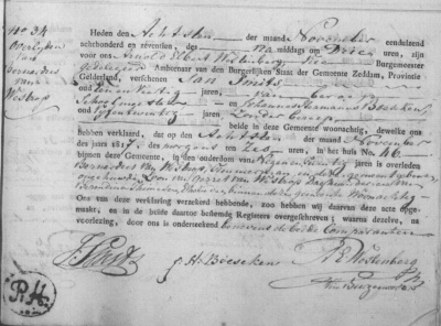 Een willekeurig voorbeeld van een Zeddamse overlijdensakte opgemaakt door viceburgemeester Westenberg