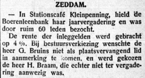 | − | De '''Coöperatieve Boerenleenbank''' te [[Zeddam]] is per notariële akte, verleden voor [[Notarissen|notaris]] [[Kalshoven, Jacobus Wilhelmus|Jacobus Wilhelmus Kalshoven]], te [['s-Heerenberg]] opgericht op 7 april [[1902]] | + | De '''Coöperatieve Boerenleenbank''' te [[Zeddam]] is per notariële akte, verleden voor [[Notarissen|notaris]] [[Kalshoven, Jacobus Wilhelmus|Jacobus Wilhelmus Kalshoven]], te [['s-Heerenberg]] opgericht op 7 april [[1902]] en vervolgens gepubliceerd in de Staatscourant van 9 april 1902. |