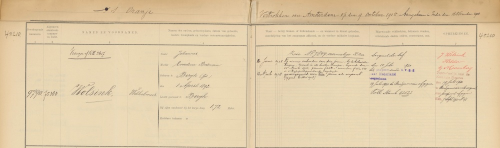 | + | [[Bestand:NL-HaNA 2.10.50 284 0010 Wolsink W.jpg|left|thumb|1000px|<center>'''Wolsinks KNIL-stamboekgegevens over zijn eerste periode in Indië</center>]] | ||