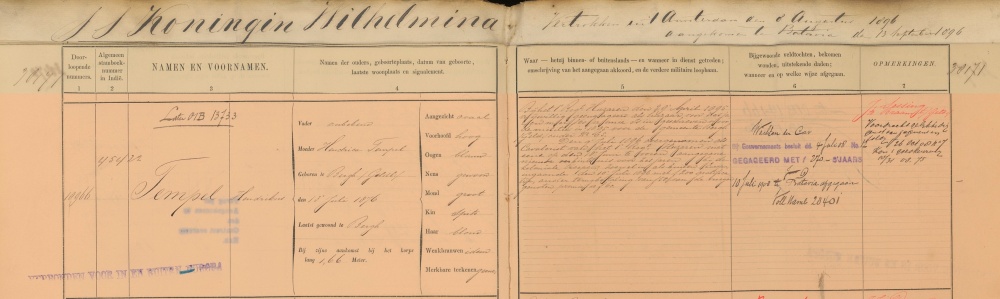 | + | [[Bestand: NL-HaNA_2.10.50_248_0162 Tempel H.jpg|thumb|left|1000px|<center>'''Tempels KNIL-stamboekgegevens.'''<br> Zijn stiefvader Jan Sessing staat vermeld als contactpersoon in Nederland.</center>]] | ||