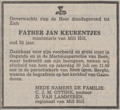[[Categorie:Keurentjes en Keurntjes]] [[Categorie:Missionarissen]] [[Categorie: Missionarissen van Mill Hill]] [[Categorie:Kapelaans Beek]]