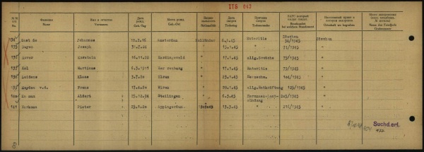 | + | *[https://collections.arolsen-archives.org/search/ Arolsen Archives], DocID 43091–43093, 70951186, 70951189, 70951239, 70993059, 76775610 | ||