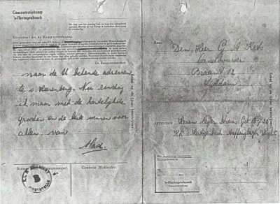 | − | Max zat in de zomer van [[1942]] al in het concentratiekamp Vught. Vanuit dit kamp heeft hij een periode grondwerk moeten verrichten bij de Moerdijkbruggen. De gevangenen in Vught mochten voedselpakketen ontvangen en Max heeft onder andere van | + | Max zat in de zomer van [[1942]] al in het concentratiekamp Vught. Vanuit dit kamp heeft hij een periode grondwerk moeten verrichten bij de Moerdijkbruggen. De gevangenen in Vught mochten voedselpakketen ontvangen en Max heeft onder andere van de [[Kets, Henk|familie Kets]] uit [[Braamt]] roggebrood en boter toegestuurd gekregen. Daarvoor heeft hij hun in een brief gedateerd 9 mei [[1943]] bedankt. Niet lang daarna is hij afgevoerd naar het vernietigingskamp Sobibor in Polen, waar hij op 9 juli 1943 is omgekomen. Hij was nog net geen 23. |