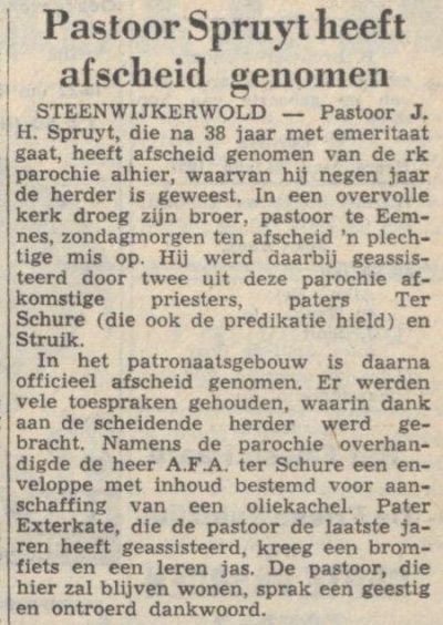 [[Bestand:Pastoor Spruijt 19570826 FrKr.jpg|thumb|right|400px|'''Uit de ''Friese Koerier'' van 26 augustus 1957]]