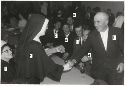| + | |[[bestand: Riny Braam 1956 Verthuizen genummerd.jpg|thumb|420px|'''Zuster Maria Inviolata werd in 1956 welkom geheten in Vethuizen.<br>1 Zuster Maria Inviolata, 2 Dora Giesen, 3 Hein Spaan, 4 R. Winters, 5 Harrie Peters, 6 Josef Braam, 7 Hendrik Banning, 8 Josef Marinus Braam]] | ||
