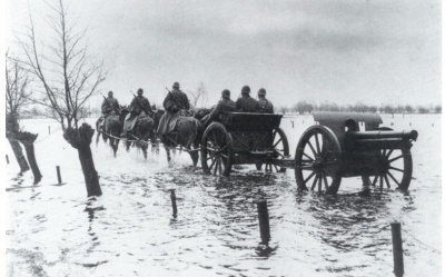 [[Bestand:Stuk van 7-veld.jpg|thumb|right|400px|<center>'''Een stuk van 7-veld trekt door geïnundeerd gebied.</center>]] | [[Bestand:Stuk van 7-veld.jpg|thumb|right|400px|<center>'''Een stuk van 7-veld trekt door geïnundeerd gebied.</center>]] | ||