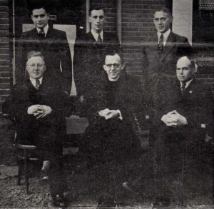 | + | [[Afbeelding:Redactie Klok St Oswaldus.jpg|thumb|300px|left|'''De redactie van ''De Klok''. Zittend in het midden kapelaan Borghuis. Wie verbindt de overige namen met het juiste gezocht?]] | ||