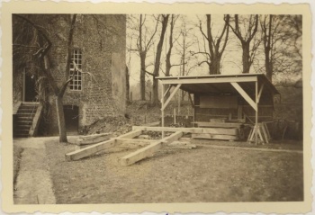 Het doorgraven van den dam in de gracht is ook gereed gekomen en hiermede is het kasteel weer rondom in het water komen te liggen. Zeer waarschijnlijk zal na beëindiging der restauratie nog een ophaalbrug worden gemaakt bij de kasteelingang, doch een beslissing hieromtrent is nog niet genomen.