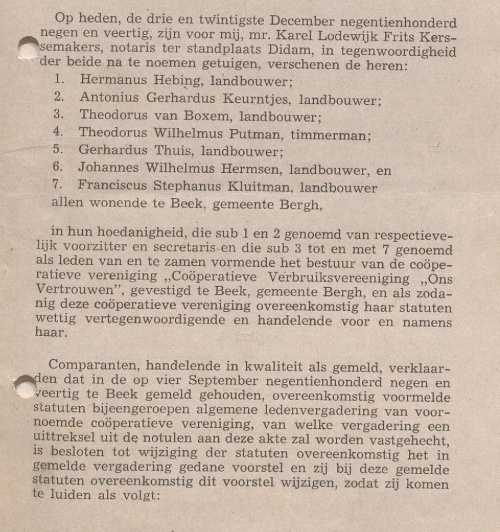 Opmerkelijk feit is dat de Coöperatie Ons Belang U.A. te ‘s-Heerenberg op dezelfde dag haar ledenvergadering had belegd en ook op dezelfde dag de voortzetting plaats vond.
