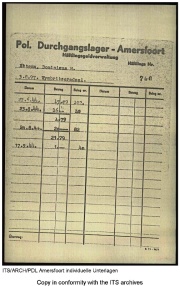 | 8 mrt 2010 18:29 | Ettema PDL Transportkarte Neuengamme.jpg (bestand) | 161 kB | Ettema's transportkaart naar Neuengamme uit Kamp Amersfoort, bewaard in ITS-Arolsen. Beschikbaar gesteld door Annemiek Littlejohn van Stichting Hart voor Kamp Amersfoort. | 1 | |