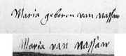 | 21 okt 2010 07:06 | Handtekeningen Maria van Nassau.JPG (bestand) | 28 kB | Maria van Nassau aan Willem van Oranje, 24-12-1573 en 5-9-1576, De correspondentie van Willem van Oranje nrs. 5633 en 5634, 20-10-2010. http://www.inghist.nl/Onderzoek/Projecten/WVO/brief/5633 en http://www.inghist.nl/Onderzoek/Projecten/WVO/brief/5634 | 1 | |