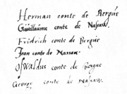 | 21 okt 2010 07:10 | Handtekeningen graven Bergh en Nassau.JPG (bestand) | 48 kB | Graven van den Bergh en van Nassau aan Willem van Oranje, 7-6-1574, De correspondentie van Willem van Oranje nr.5681, 20-10-2010. http://www.inghist.nl/Onderzoek/Projecten/WVO/brief/5681 | 1 | |