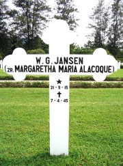 | 7 jan 2011 12:40 | Graf Jansen Kalibanteng OGS.jpg (bestand) | 87 kB | Het graf van zuster Margaretha Maria Alacoque op het Nederlandse ereveld Kalibanteng in Semarang, Indonesië. Foto Oorlogsgravenstichting | 1 | |