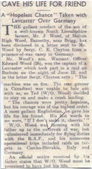 | 13 aug 2014 11:04 | Knipsel ED558.jpg (bestand) | 77 kB | Knipsel uit een onbekende krant uit de nalatenschap van sergeant Clayton, boordwerktuigkundige van Lancaster ED558 | 1 | |