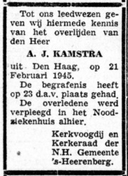 | 14 jul 2014 09:31 | Rees Kamstra RB 19450306.jpg (bestand) | 139 kB | Uit de Residentiebode van 6 maart 1945. Bron www.delpher.nl | 1 | |