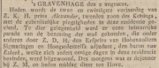| 23 okt 2015 13:05 | Erfprins Karel Anton 18410901 JdlH.png (bestand) | 625 kB | Uit het Journal de la Haye van 1 september 1841. Bron www.delpher.nl | 1 | |