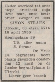 | 31 jul 2021 07:10 | Straus Simon 19560824 NIW.jpg (bestand) | 116 kB | Uit het Nieuw Israelietisch Weekblad van 13 april 1956 op http://www.delpher.nl | 1 | |