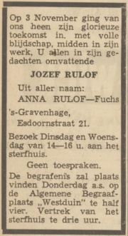| 21 jan 2022 14:54 | Rulof JG 19521104 Vdrlnd.jpg (bestand) | 439 kB | Uit Het Vaderland van 4 november 1952 op http://www.delpher.nl | 1 | |