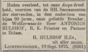 | 8 mei 2024 11:24 | Hulshof 18840311 Tijd.jpg (bestand) | 173 kB | Uit De Tijd van 11 maart 1884 op http://www.delpher.nl | 1 | |