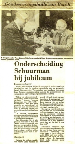 Willem Schuurman, met zijn karakteristieke schorre stem, zoon van G.W. Schuurman de Snor, was ook eigenaar van de winkel Schuurman aan de Molenpoortstraat, Schuurman's Bazar, en aan de Klinkerstraat een speelgoedwinkel te 's-Heerenberg. Hij was provisor en voorzitter van het Gasthuis Sint-Gertrudis, raadslid, wethouder en loco-burgemeester van de gemeente Bergh. In zijn woonplaats is een straat naar hem genoemd.