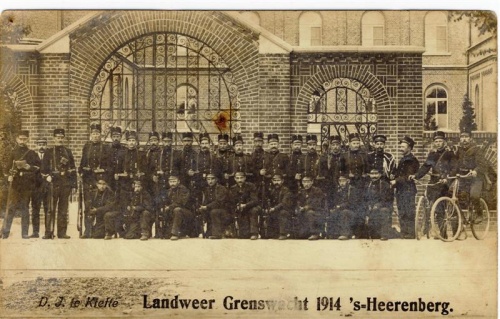Grenswacht bij het Bonifatiushuis in 1914. Rechts onder knielend G.W. Schuurman