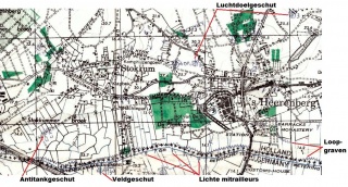 Versie door Verre neef (overleg | bijdragen) op 24 nov 2013 om 12:59 (Uitvergroot deel met annotatie van de Geallieerde Stafkaart)