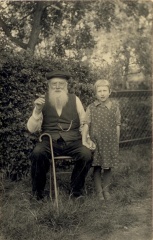 Antonius Berentsen (1854-1938) in de hof met kleinkind Jo Scholten (geb. 05.11.1928)