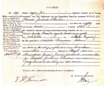 Zijn moeder heeft het overlijden op 9 juni 1945 aangegeven in Heerlen. Daarbij heeft zij als overlijdensdatum opgegeven 26 december 1944. Waarschijnlijk heeft zij deze datum van het Rode Kruis of misschien van een medegevangene van haar zoon doorgekregen. Twee jaar later bleek deze datum onjuist te zijn. Een ambtenaar maakte op 28 juni 1947 een aantekening in de kantlijn van de overlijdensakte, waarbij blijkt dat Berendsen volgens zijn Duitse overlijdensakte (no. 597 van 1944, opgemaakt in Köln-Deutz) al op 24 november 1944 was overleden.