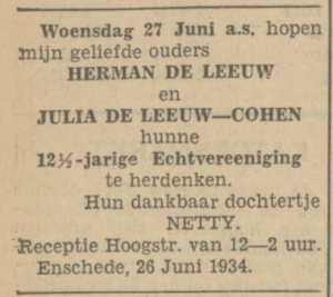 Uit dit huwelijk werd in 1923 een dochter geboren die Netty gedoopt werd.