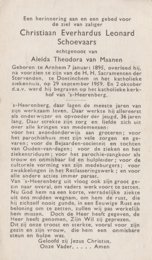 Schoevaars overleed op 64-jarige leeftijd op 29 september 1959 te Doetinchem.