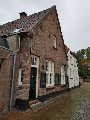Het lijkt erop dat er vroeger op de zolder van dit huis duiven werden gehouden, want bovenin zowel de voor- als de achtergevel zijn zes vlieggaten aangebracht, gegroepeerd in een driehoek.
